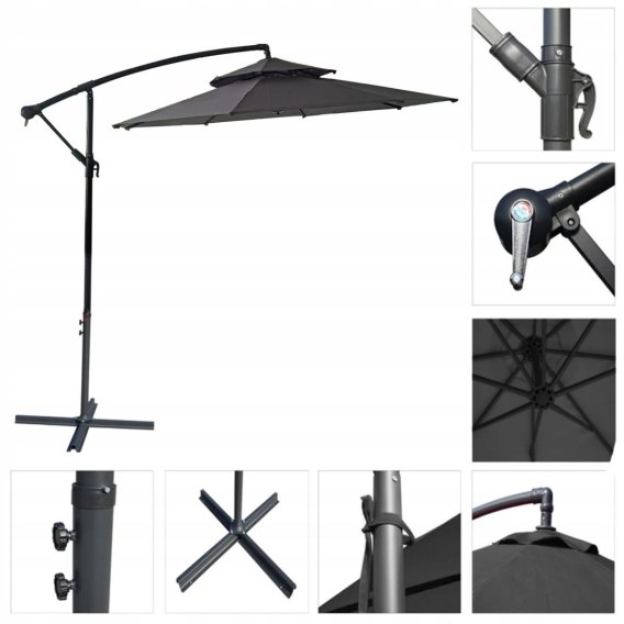 - Łatwość obsługi: Mechanizm korbowy do szybkiego rozstawiania parasola