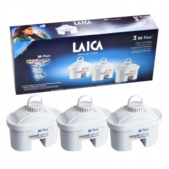 💧 Czysta woda z zachowaniem minerałów Wkład LAICA BI-FLUX MineralBalance filtruje wodę i pozostawia wapń oraz magnez. ✔ lepszy smak i zapach ✔ redukcja chloru i zanieczyszczeń ✔ do 150 l wydajności ✔ ok. 1 miesiąc użytkowania